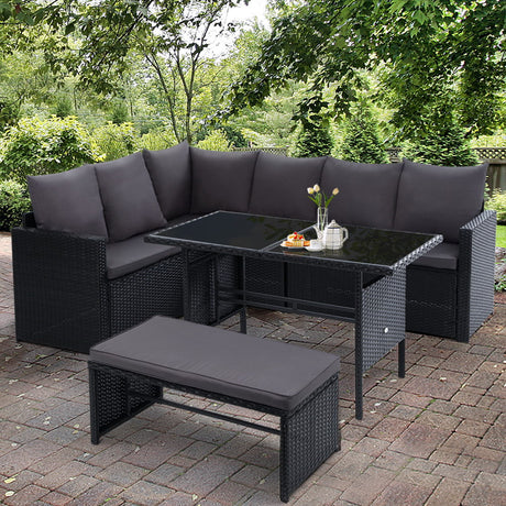 Gardeon Outdoor Furniture Dining Setting Sofa Set Lounge Wicker 8 Seater Black