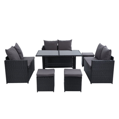 Gardeon Outdoor Furniture Dining Setting Sofa Set Lounge Wicker 9 Seater Black
