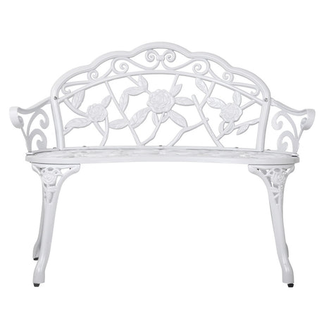Gardeon Outdoor Garden Bench Seat 100cm Cast Aluminium Outdoor Patio Chair Vintage White