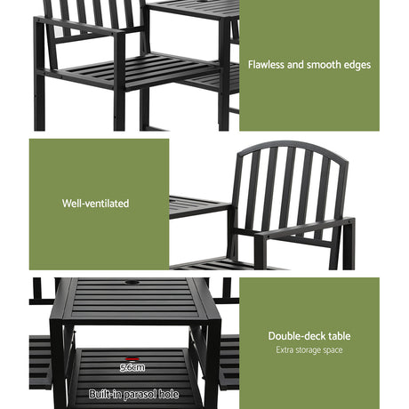 Gardeon Outdoor Garden Bench Steel Foldable Table Furniture Patio Loveseat