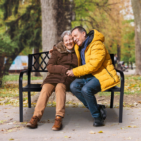 Gardeon Outdoor Garden Bench Seat Steel Outdoor Furniture 2 Seater Park Black