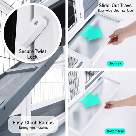 Paw Mate 96.5 x 56 x 90.5cm Rabbit Hutch Chicken Coop 2 Storey Pet Cage Run Wheels