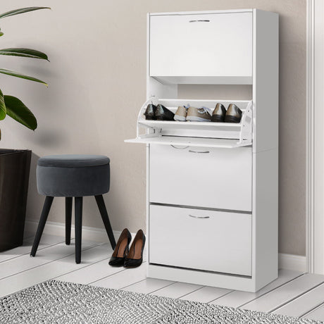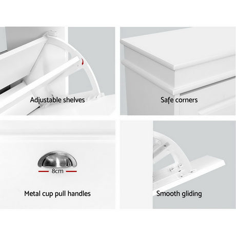 Artiss Shoe Cabinet Shoes Storage Rack Organiser White Shelf Drawer Cupboard 24 Pairs