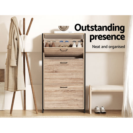 Artiss Shoe Cabinet Shoes Storage Rack Wooden Organiser Up to 24 Pairs Shelf Cupboard Metal Frame