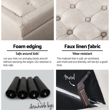 Artiss Large Fabric Storage Ottoman - Beige
