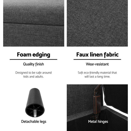 Artiss Storage Ottoman Blanket Box 126cm Linen Fabric Arm Foot Stool Couch Large