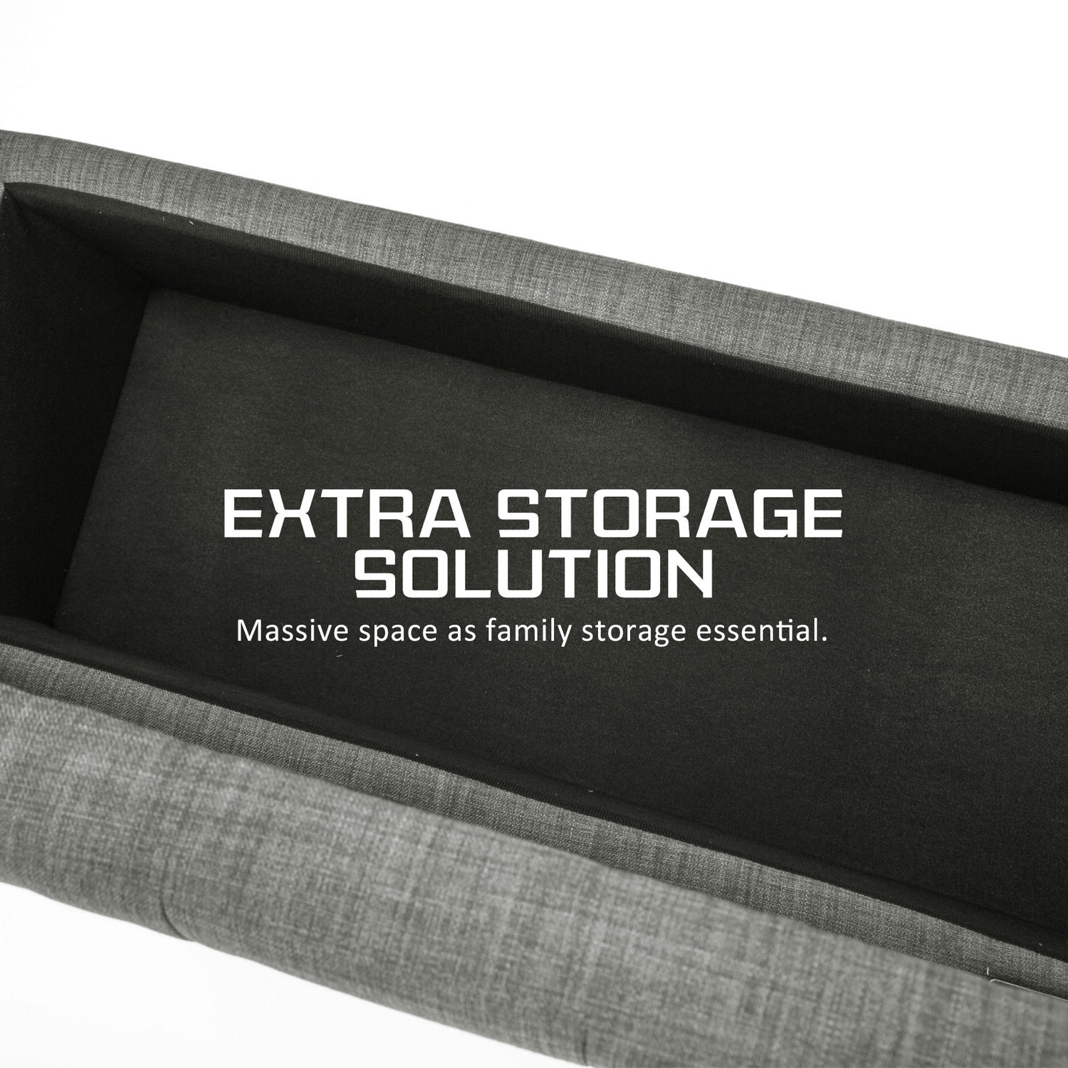 La Bella Storage Ottoman Foot Stool 102cm Fabric Blanket Box Chest Toy - Dark Grey