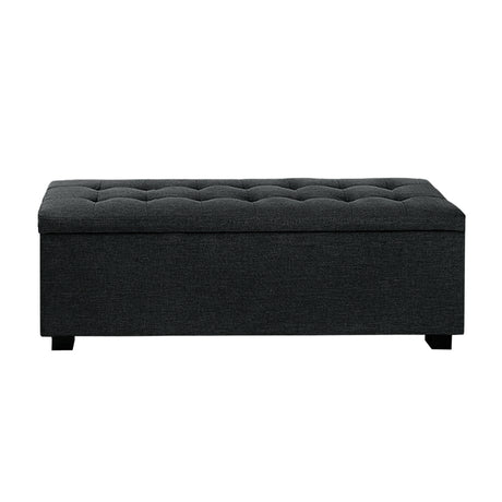 La Bella 102cm Dark Grey Storage Ottoman Stool Fabric