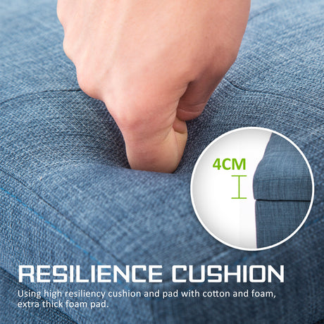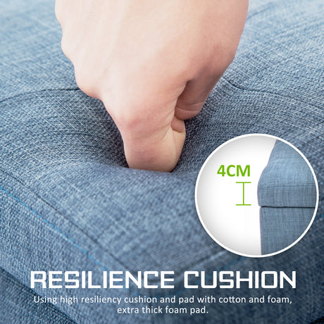 La Bella 102cm Light Grey Blue Storage Ottoman Stool Fabric