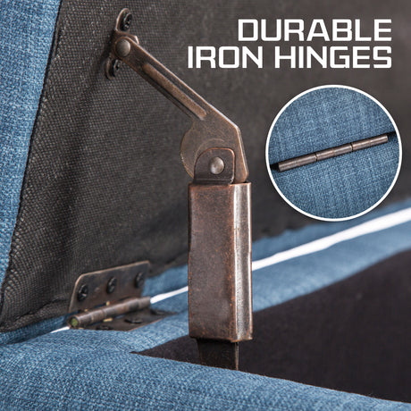 La Bella 102cm Dark Blue Storage Ottoman Stool Fabric