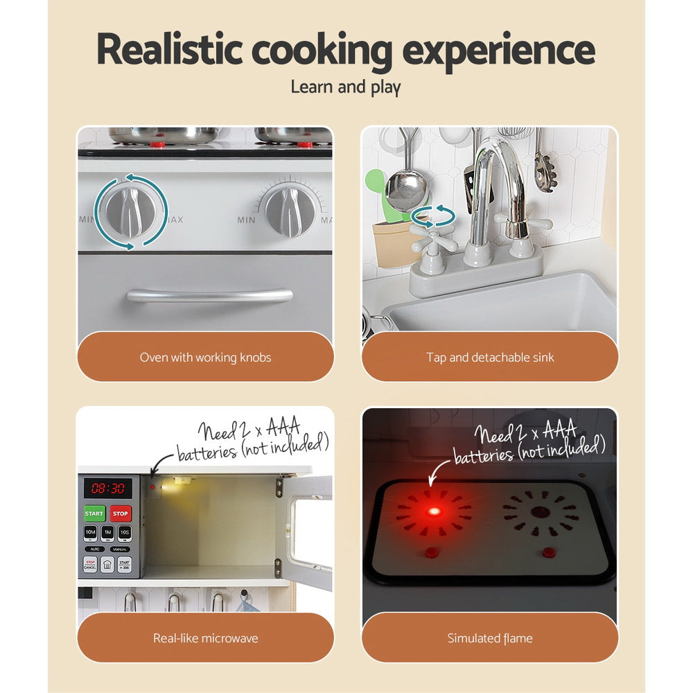 Keezi Kids Kitchen Set Pretend Play Wooden Toys Cooking Cookware Childrens Toy