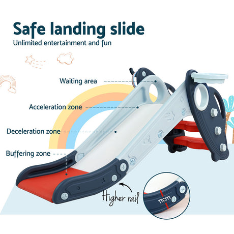 Keezi Kids Slide 170cm Extra Long Swing Basketball Hoop Toddlers PlaySet Blue