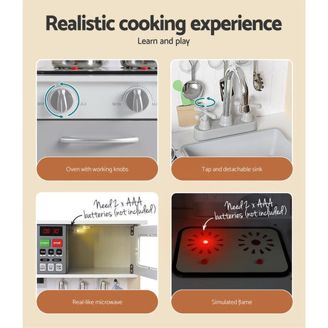 Keezi Kids Kitchen Set Pretend Play Food Sets Childrens Utensils Wooden White