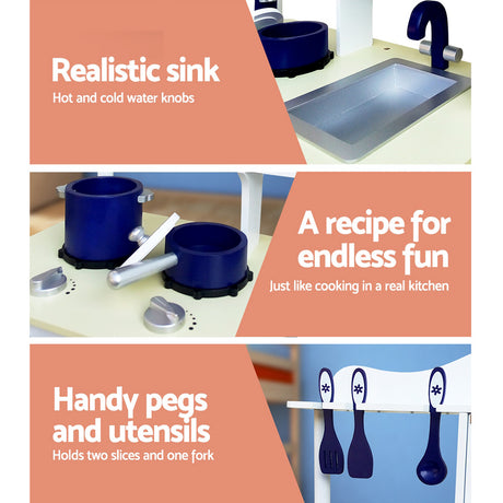 Keezi Kids Kitchen Set Pretend Play Wooden Toys Cooking Cookware Childrens Toy