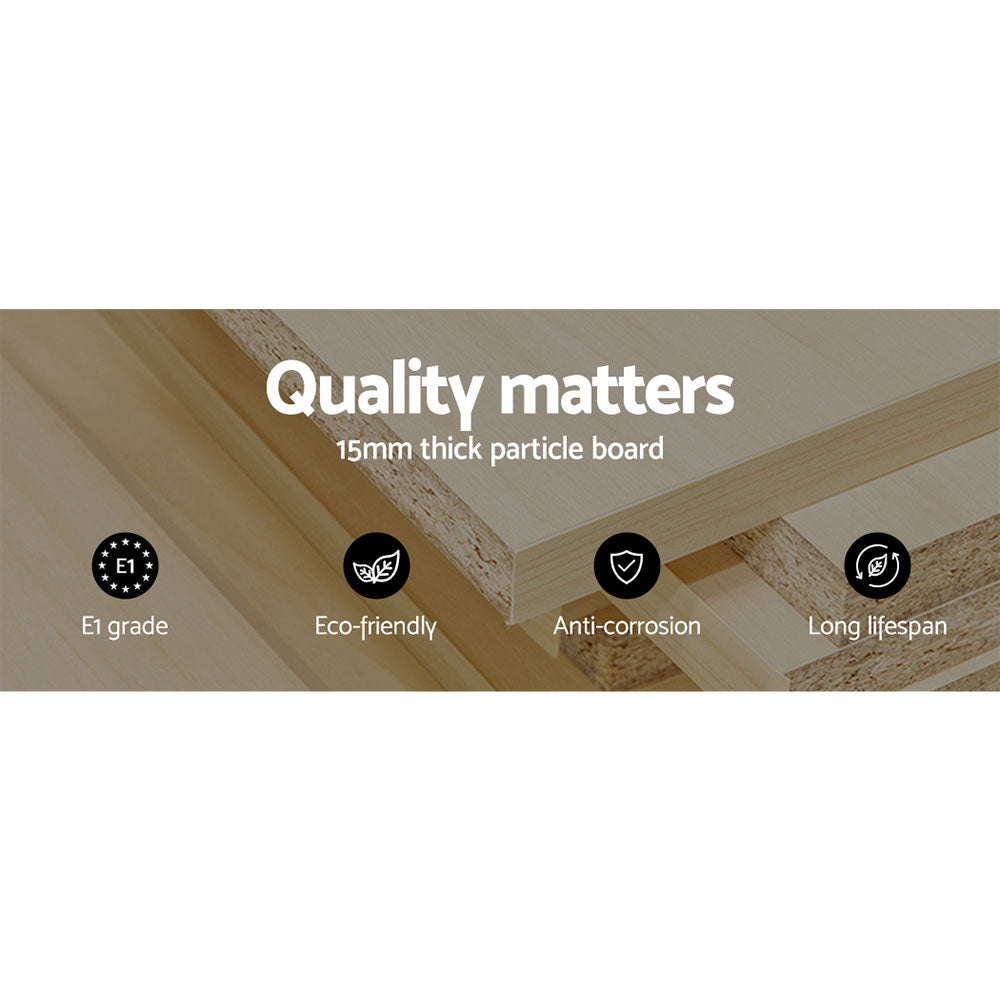 Want to add a WOW-effect to your living room? Our Artiss LED entertainment unit won’t disappoint you. Boasting a unique combination of functionality and creativity, this entertainment unit is designed to enhance your living space and create a pleasant ambience. The entertainment unit features built-in RGB LED lighting that you can customise into 16 different colours and four flashing modes with a touch of a button. It will perfectly complement your modern home décor and enable you to achieve a one-of-a-kind look. Having been constructed from 15mm thick particle board with UV high gloss on the front and melamine finish, this piece of furniture is quite sturdy and will withstand the test of time. It has spacious drawers with smooth metal runners for hassle-free operation and two tempered glass shelves to store all your entertainment paraphernalia. Bring this uniquely designed entertainment unit for your home today.