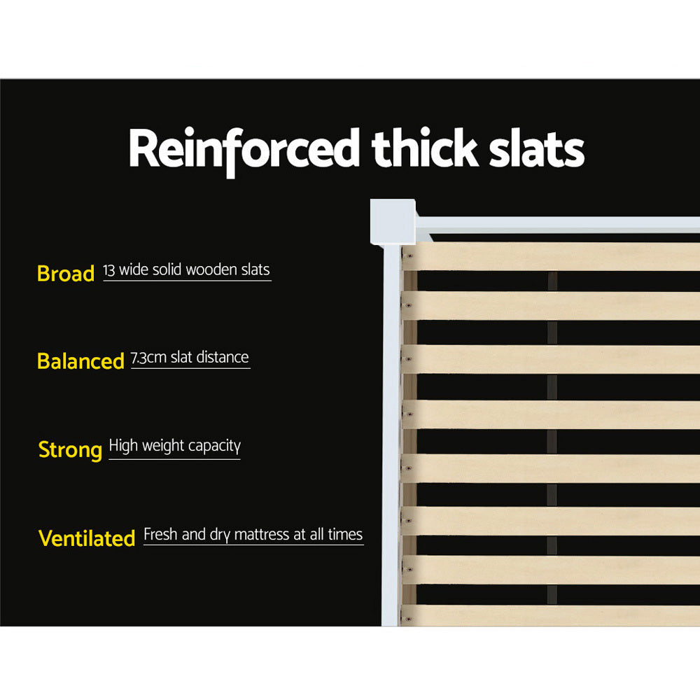 Made of solid pine wood, the Bed Frame is an all-round functional design that is compatible with most Australian sized mattresses and ideal for use by both young and old alike.