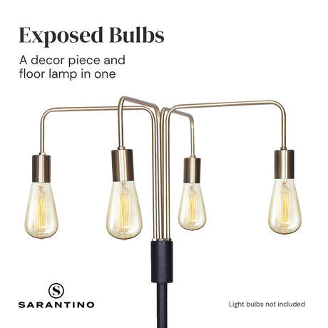 Sarantino Modern Exposed Bulb 4-Arm Industrial Light Floor Lamp
