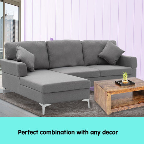 Sarantino Linen Corner Sofa Couch Lounge L-shape W/right Chaise Seat Dark Grey