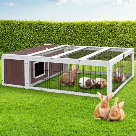 i.Pet Rabbit Hutch Chicken Coop Wooden Cage Pet Hutch 220cm x 52cm x 84cm