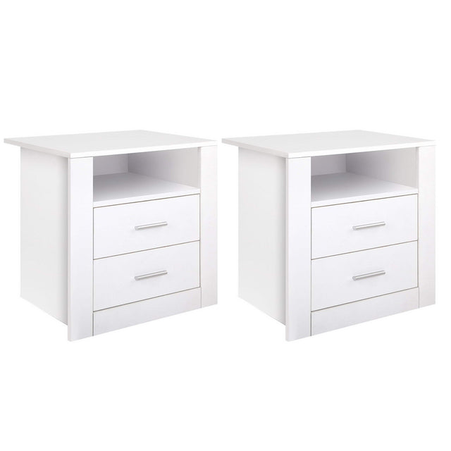 Artiss 2 X Bedside Table 2 Drawers with Shelf - TARA White