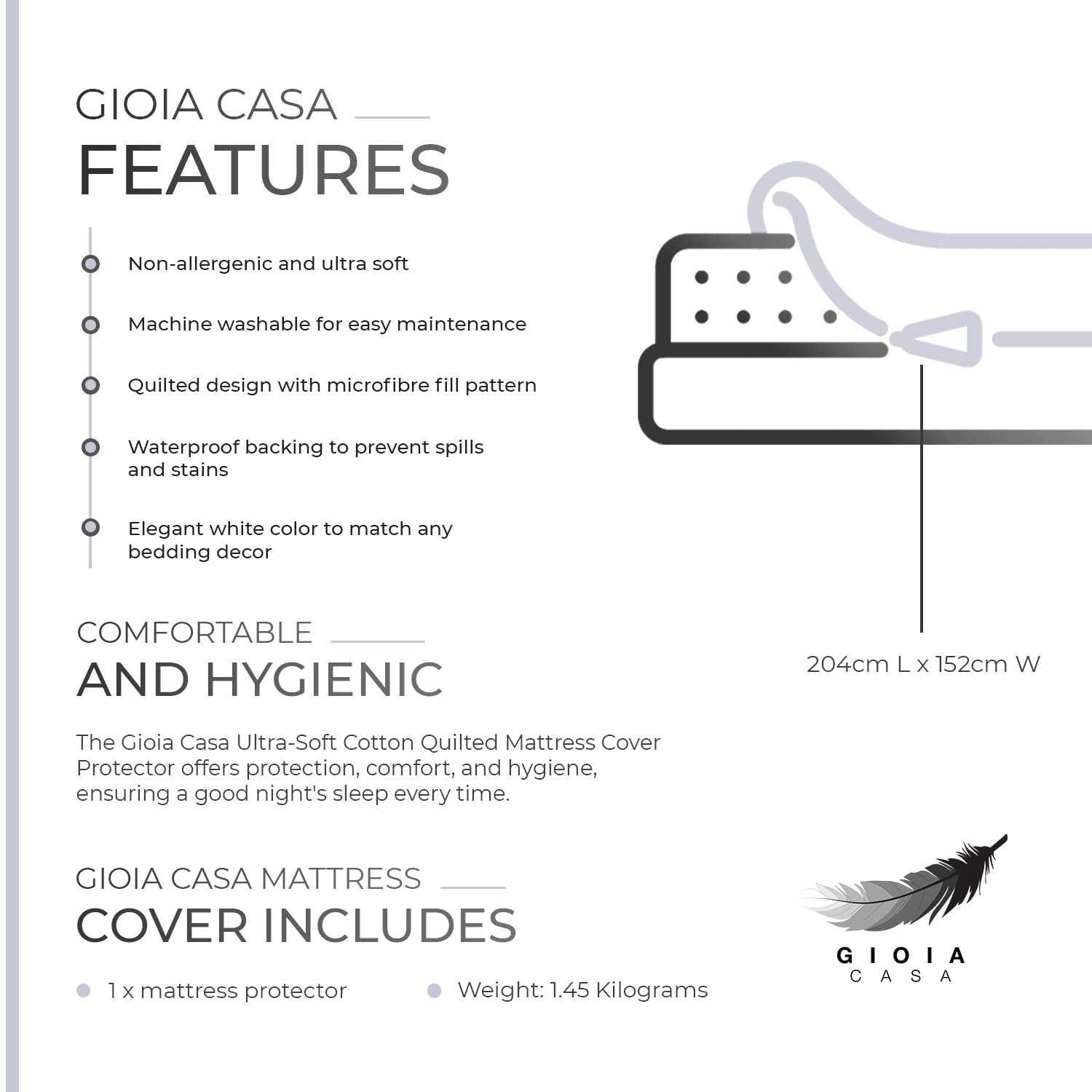 Gioia Casa 100% Ultra-Soft Cotton Quilted Anti-Microbial Mattress Cover Protector - Hypoallergenic, Waterproof, Machine Washable