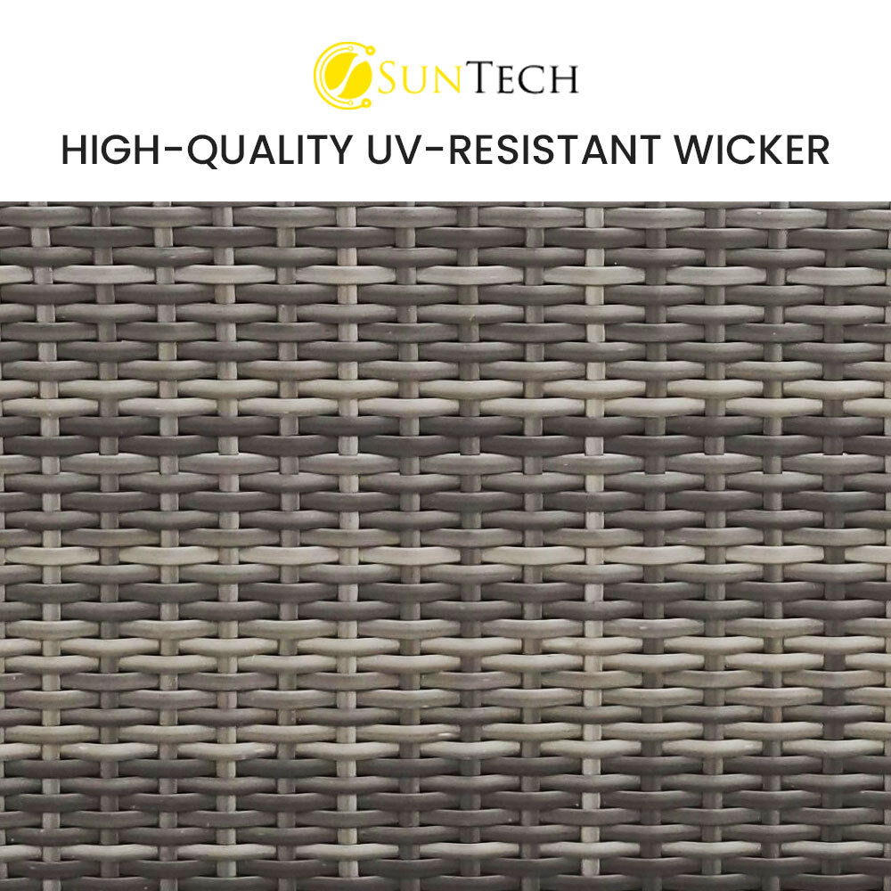 The sofa includes ultra-comfy 10cm thick water-resistant seat cushion and generous backrest cushioning. The high-quality UV-resistant handwoven Suntech wicker in Marl Grey weave has a premium natural textured look. Mix and match with other London Rattan modular pieces to create your own custom outdoor setting. You can set it up in whatever configuration works best for you, making this London Rattan outdoor sofa a great addition to any outdoor space.